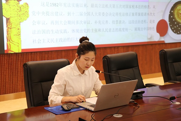 活動(dòng)分兩個(gè)環(huán)節(jié)。在第一個(gè)環(huán)節(jié)中,由法律事務(wù)專員為公司全體干部職工講解了憲法修改的意義、新憲法修改的重點(diǎn)內(nèi)容等,其中針對(duì)我國(guó)設(shè)立國(guó)家憲法日的目的和意義做了重點(diǎn)講解。